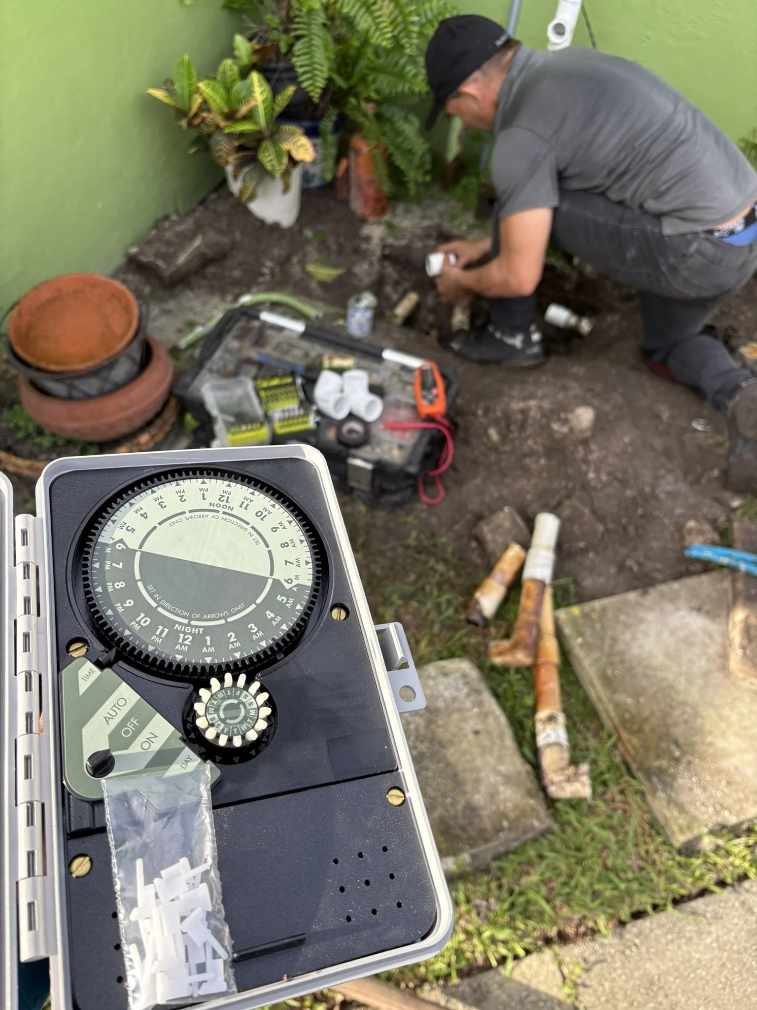 Sprinkler digital timer service in Miami & Broward. Install Rain Bird, K-Rain, Hunter, Orbit, or Rachio smart timers for efficient irrigation control.